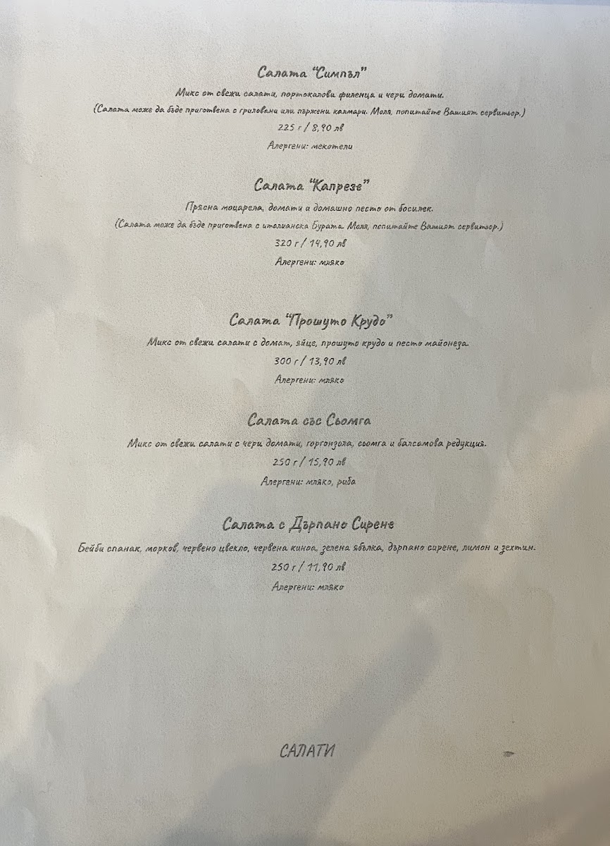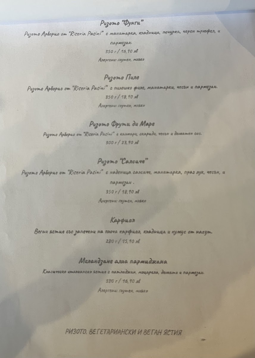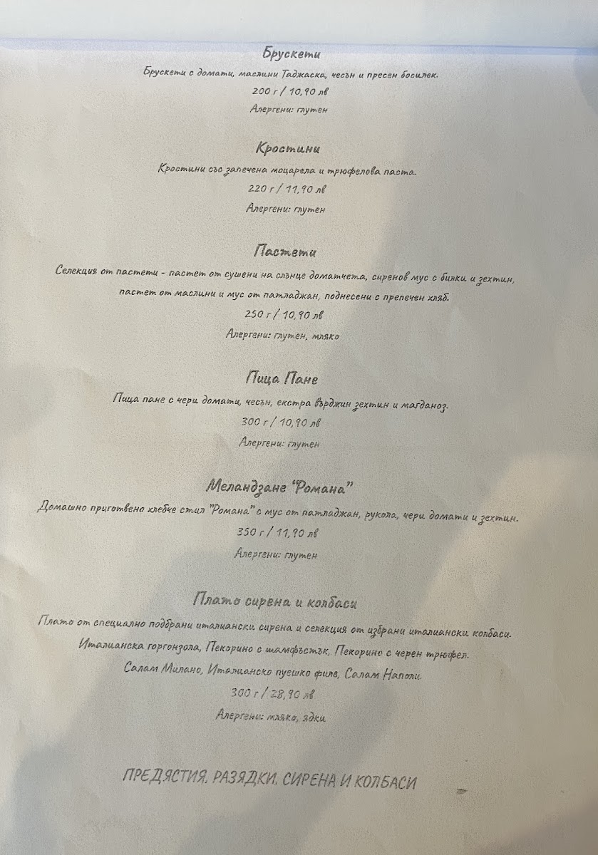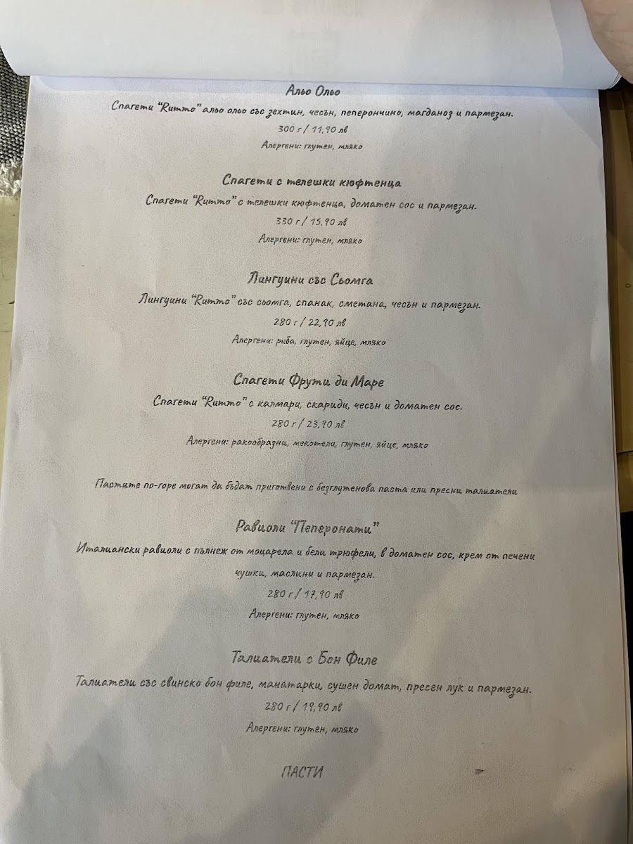 From a reviewer’s perspective, the menu at Rb Kitchen - Italian offers a compact but appealing selection that blends seafood, desserts, and sharing plates with value-focused combo options. Highlights include the seafood dish Пъстърва and the well-portioned Калмари (250г), which are great choices for seafood lovers, while the classic dessert Тирамису (150г) provides a traditional Italian finish to the meal. For starters or sharing, the Брускети (200г) and Плато Сирена И Колбаси (300г) are ideal for the table and pair well with drinks. The restaurant also stands out for its combo deals, such as 2 Пици Или 2 Пасти + 2 Напитка, Пица+Паста+Бургер+3 Бири Морети, and Пица+Паста2 Пасти И Чеснова Пица Али Олио, which offer good variety and value, especially for groups. Overall, the menu is not overly large, but the combination meals and classic Italian selections make it satisfying and practical, particularly for diners looking for variety at a reasonable price.